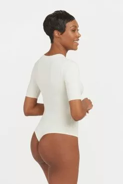 Spanx Suit Yourself Figurformender, Gerippter Body Mit Kurzen Ärmeln, Weiß
