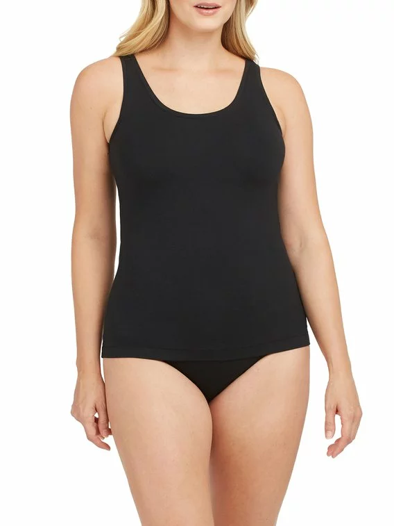 Mehr Halt und mehr Komfort verspricht das Tanktop von SPANX aus der Serie „Cotton Control“. Aufgrund des atmungsaktiven und leichten Materials liegt das Top angenehm auf der Haut an. Zudem ist es durch seine flache Naht-Verarbeitung unter enger Kleidung unsichtbar. Diese vielseitigen Lagenlooks bieten glättende Kompression und sind perfekt zum Relaxen oder für unterwegs. Die Träger sind breit gestaltet und verdecken somit auch darunterliegende BH-Träger.