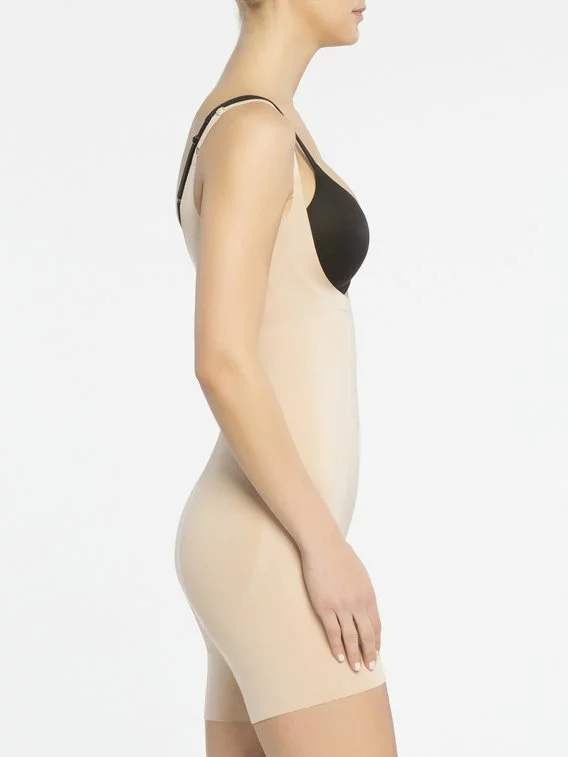 Mit diesem Modell aus der „Oncore“ Serie von SPANX kommt ein Shapesuit daher, der sich fast allen Problemzonen der Frau annimmt. Das dünne und leichte Material ist besonders stabil und wird zusätzlich am Bauch mit einer verstärkten Shape-Platte unterstützt. Dank geklebter Abschlüsse werden auch unangenehme Nahtstellen verhindert. Das Beste daran: Dank dem tiefen Ausschnitt kann der ganz persönliche Lieblings-BH dazu kombiniert werden.