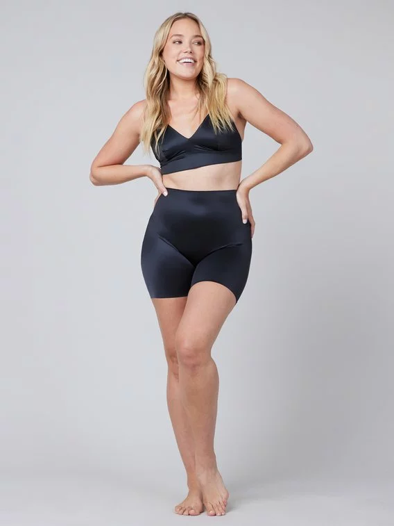 Die Shaping-Short mit langem Bein der Serie „Shaping Satin“ von SPANX ist luxuriös und hat das gewisse Etwas. Die Short ist aus glänzendem Stretchmaterial mit Satin-Finish und fühlt sich dank dem soften Satin an wie eine zweite Haut. Das Stretchmaterial ist super leicht und trocknet sehr schnell, damit ist der Wohlfühlkomfort den ganzen Tag gewährleistet. Die gebondeten Abschlüsse der Shorts macht die Shapingwäsche unsichtbar unter deiner Kleidung.