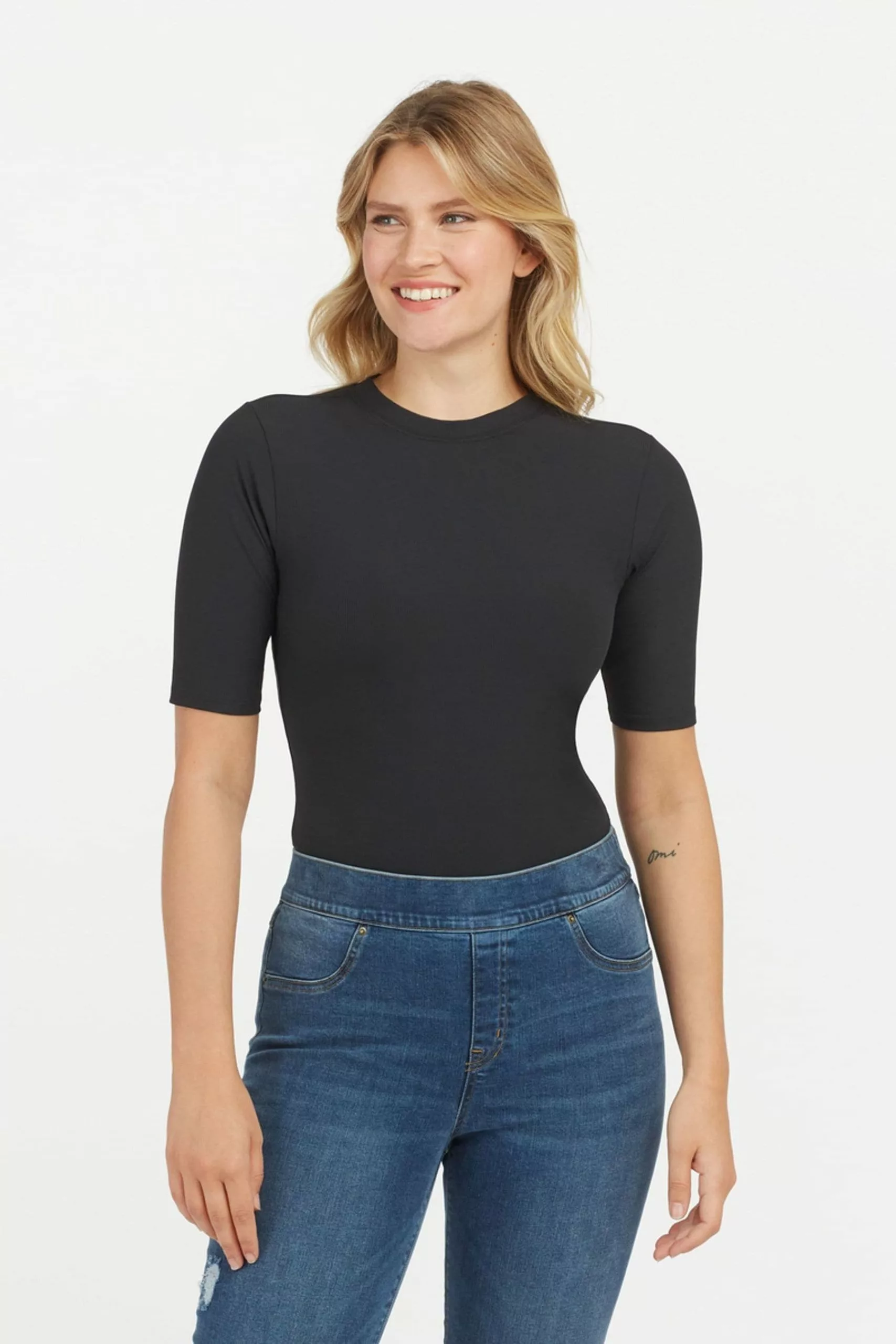 Spanx Suit Yourself Figurformender, Gerippter Body Mit Kurzen Ärmeln, Schwarz