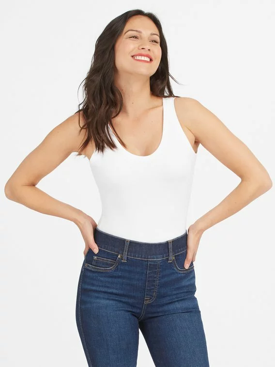 Der Bodysuit der Serie „Suit Yourself“ von SPANX macht sowohl als Unterwäsche als auch in Kombination zur Jeans eine gute Figur. Der String-Body besteht aus einem weichen Stretchmaterial und verfügt über eine leichte Shaping-Funktion im Bauchbereich, um einen idealen Sitz, hohen Tragekomfort und eine tolle Silhouette zu bieten. Die flachen Abschlüsse des Shaping-Bodys und die knappe Schnittform am Gesäß schmiegen sich zudem perfekt an die Haut und zeichnen sich nicht durch die Oberbekleidung ab.
