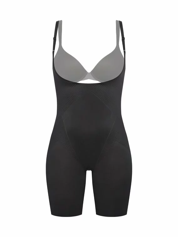 SPANX leitet mit der »Thinstincts 2.0« Serie eine neue Generation von Shapewear ein! Der Open-Bust Mid-Thigh Bodysuit aus dieser Kollektion wurde designed, um dir höchsten Komfort zu bieten und deine Konturen perfekt in Szene zu setzen. Der Einteiler verfügt über die innovative Printed Power(TM) Technologie mit langlebigen LYCRA®FitSense(TM) Fasern, um einen gezielten Shape-Effekt an Bauch und Taille zu erzielen. Das atmungsaktive, ultraleichte und strapazierfähige Gewebe des Bodys bietet ein hautschmeichelndes Tragegefühl und wirkt modellierend an Hüften und Po. Die flachen, weichen Abschlüsse zeichnen sich nicht unter der Oberbekleidung ab und dank des tiefen Ausschnitts kann der Bodysuit perfekt mit dem Lieblings-BH kombiniert werden.