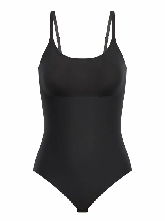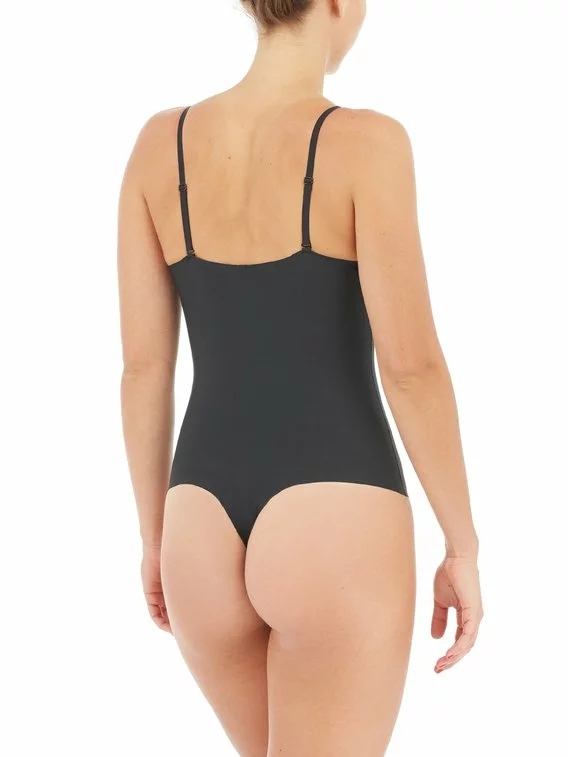 Mit dem Body aus der Serie „Thinstincts 2.0“ von SPANX haben Sie einen absoluten Allrounder in der Wäscheschublade. Der String-Body sorgt nicht nur für ein komfortables Tragegefühl, sondern kümmert sich auch um die ein oder andere Problemzone, zum Beispiel im Bereich des Bauches und der Taille. Durch das leichte und atmungsaktive Material kann der Body problemlos den ganzen Tag getragen werden. Die Beinabschlüsse sind geklebt und an der Innenseite mit einem fixierenden, haltenden Material versehen, sodass nichts verrutschen kann. Die String-Form verhindert unangenehme Panty-Abdrücke unter enger Kleidung.